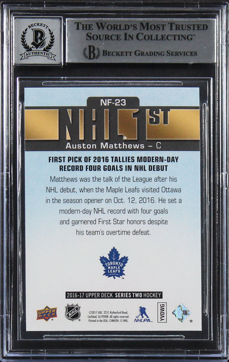 Auston Matthews Signed 2016 Upper Deck NHL Firsts #NF23 RC Card Auto 10 BAS Slab