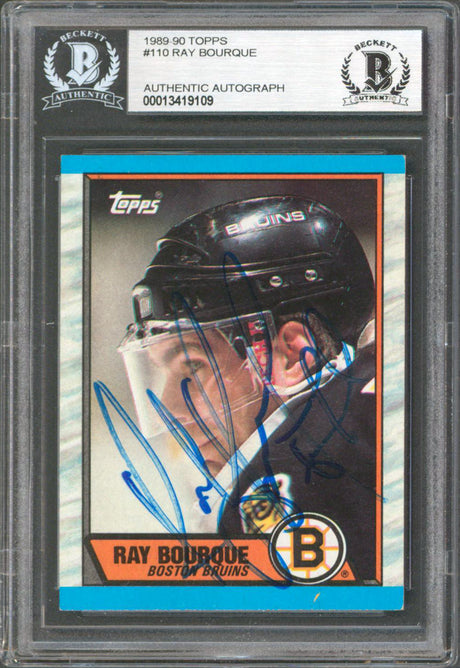 Very low stock (1 unit)$69Unit price /UnavailableBruins Ray Bourque Authentic Signed 1989 Topps #110 Card Autographed BAS Slabbed