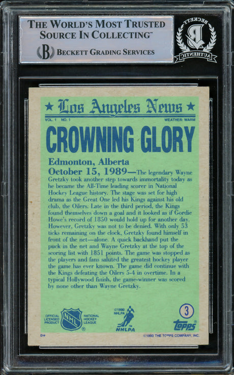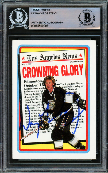 Wayne Gretzky Autographed 1990-91 Topps Card #3 Los Angeles Kings Beckett BAS #15500207