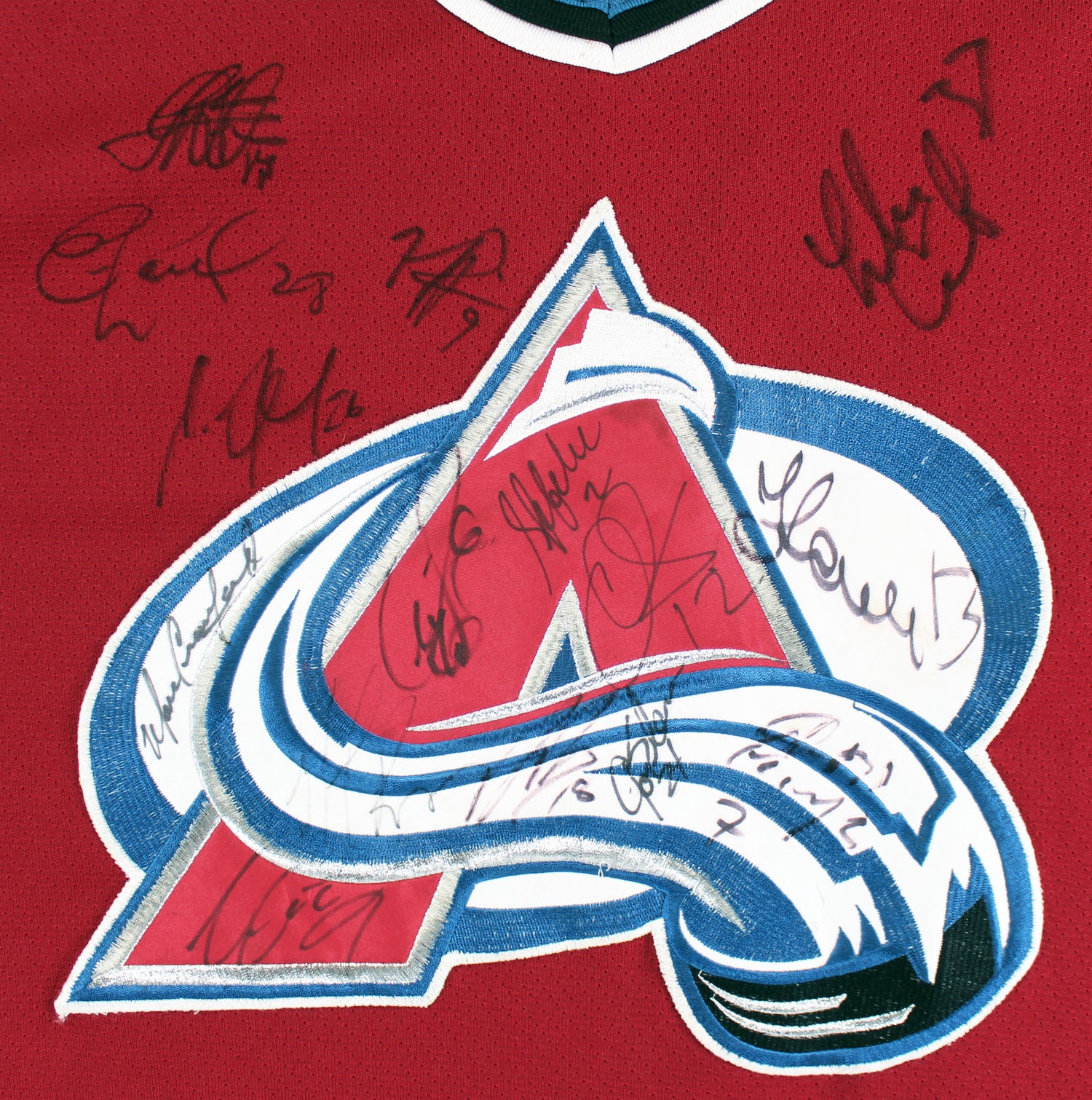 This Autographed Starter Jersey is a must-have for any Colorado Avalanche fan or serious memorabilia collector. Personally signed by Marc Crawford, Patrick Roy, Adam Foote, Mike Ricci, Adam Deadmarsh, Valeri Kamensky, Sylvain Lefebvre, and 8 more legendary players, this piece embodies the legacy of one of hockey's most dominant teams.