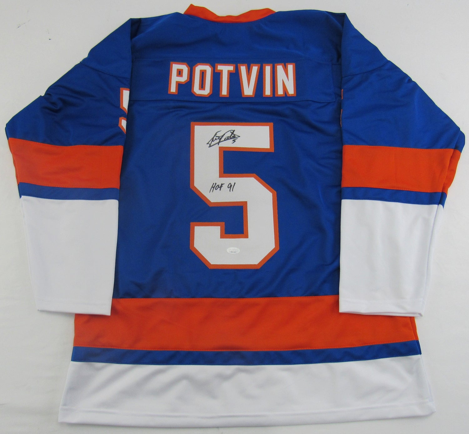 Own a piece of hockey history with this Denis Potvin Signed Replica New York Islanders Jersey featuring a Hall of Fame 1991 inscription. A must-have for any Islanders fan or memorabilia collector, this jersey celebrates the legendary defenseman who helped lead the team to four consecutive Stanley Cup victories. Authenticated by JSA (James Spence Authentication) for guaranteed authenticity.