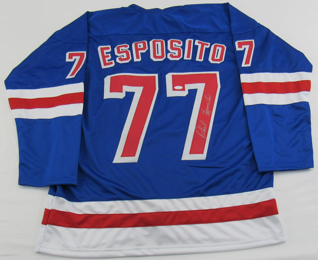 Phil Esposito Signed Auto Autograph Replica Rangers Jersey Insc JSA Certified