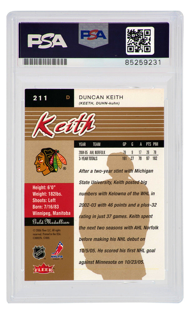 Duncan Keith Signed Blackhawks 2006 Fleer Ultra Gold Medallion Hockey Rookie Card #211 - (PSA Encapsulated)