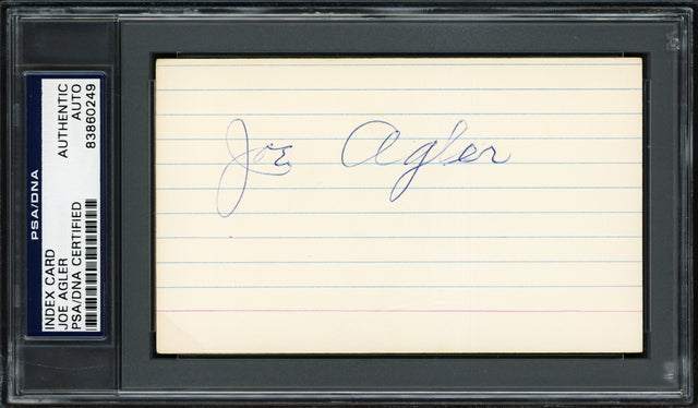 - Authentic Joe Agler signature — features a bold autograph on a classic 3x5 index card.