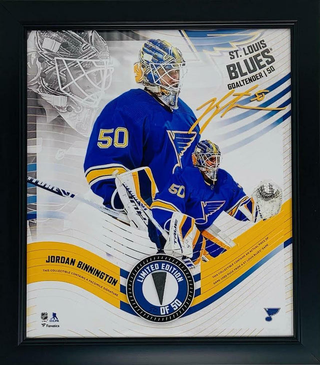 Show off your love for the St. Louis Blues with this Jordan Binnington Player Collage, a must-have collectible for dedicated fans. This exclusive piece celebrates the star goaltender with striking imagery and an authentic game-used puck piece, making it a rare find for memorabilia enthusiasts. Limited to just 50 pieces, this edition ensures exclusivity, and you'll receive the coveted number "50" from the set—making it even more special.
