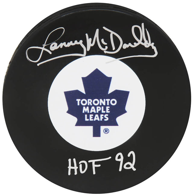 Lanny McDonald Signed Maple Leafs Logo Hockey Puck w/HOF'92