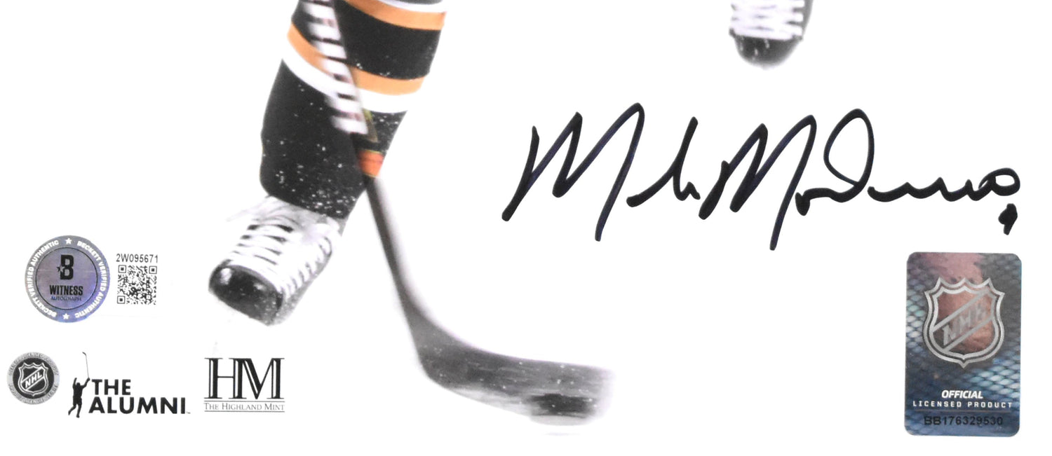 Own a piece of hockey history with this hand-signed 8x10 photo of Mike Modano, legendary center of the Dallas Stars. This high-quality Highland Mint photo has been personally autographed by Modano, a Hall of Famer and franchise icon known for his incredible speed and scoring ability.