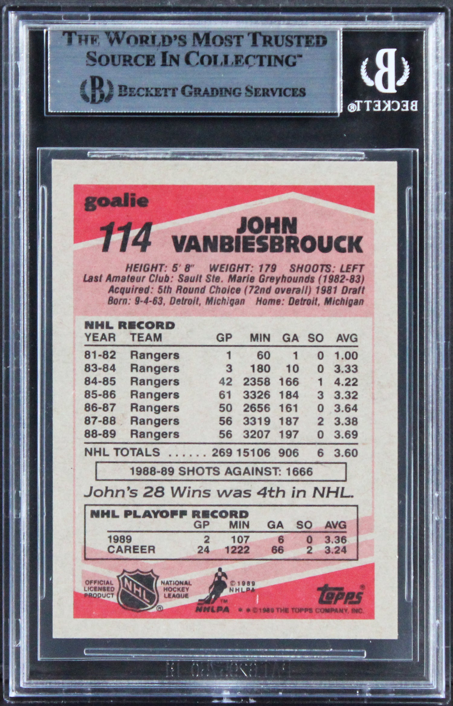 Rangers John Vanbiesbrouck Authentic Signed 1989 Topps #114 Card BAS Slabbed