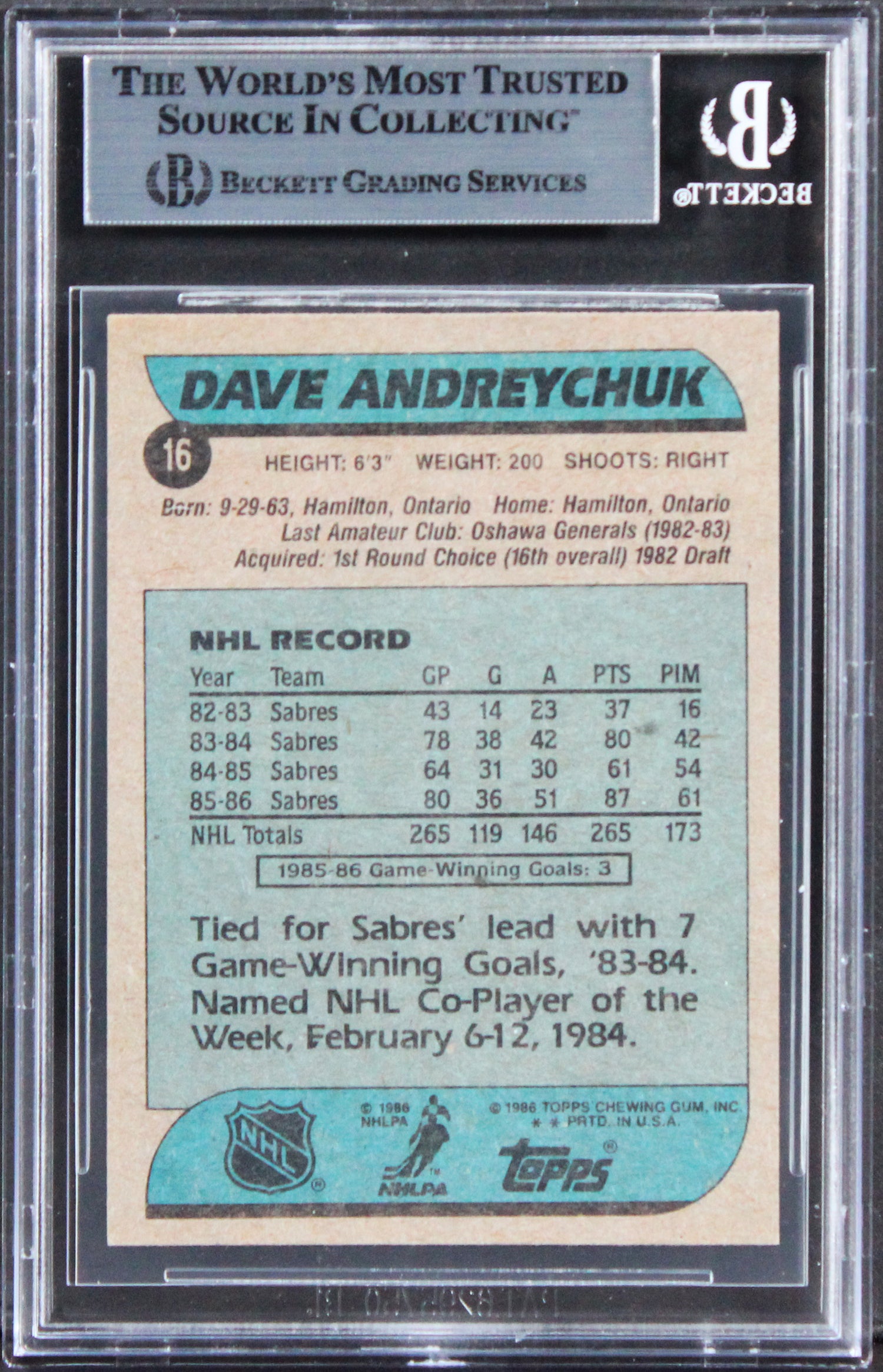 Sabres Dave Andreychuk Authentic Signed 1986 Topps #16 Card BAS Slabbed