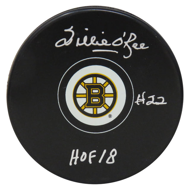 Willie O'Ree Signed Bruins Logo Hockey Puck w/HOF'18