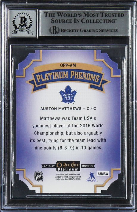 Auston Matthews Signed 2016 OPC Platinum Die Cuts #OPPAM Card Auto 10! BAS Slab