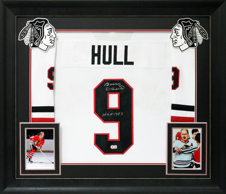 Bobby Hull "HOF 1983" Authentic Signed White Pro Style Framed Jersey BAS