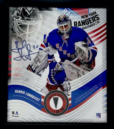 HENRIK LUNDQVIST Rangers Framed 15" x 17" Game Used Puck Display LE 50/50