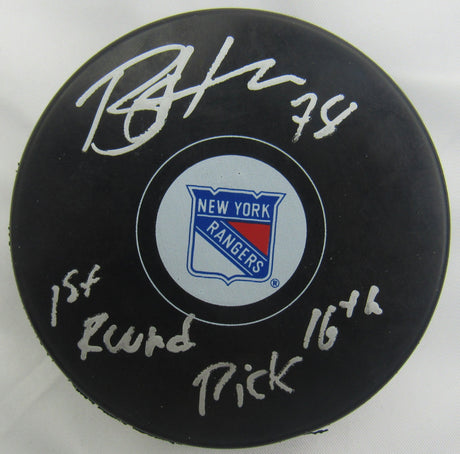 Brennan Othmann Signed Auto Rangers Puck w/ Insc JSA CF42659