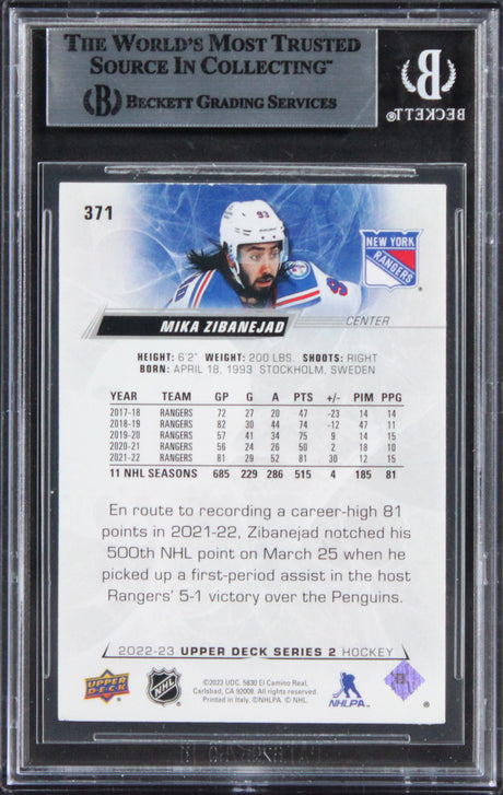 Very low stock (1 unit)$69Unit price /UnavailableRangers Mika Zibanejad Authentic Signed 2022 Upper Deck #371 Card BAS Slabbed