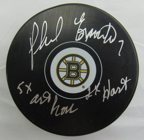 Phil Esposito Signed Auto Autograph Bruins Logo Hockey Puck w/ Insc JSA WB307840