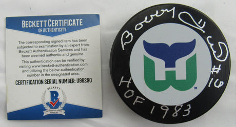 Bobby Hull Signed Auto Autograph Whalers Logo Hockey Puck w/ Insc Beckett Hologram U96290
