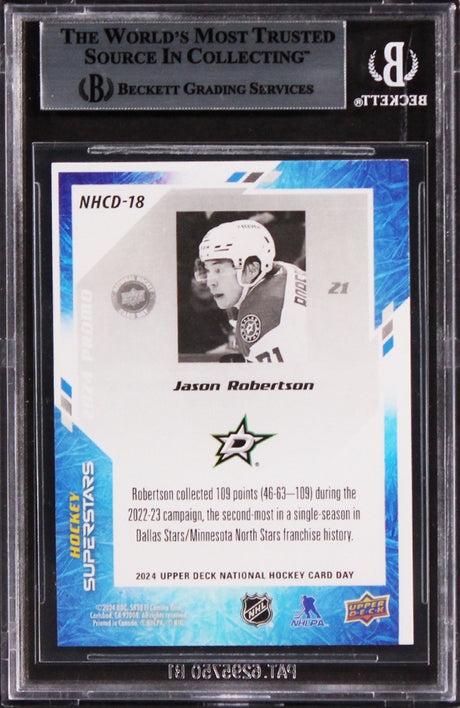 Very low stock (1 unit)$159Unit price /UnavailableJason Robertson Signed 2023 UD National Hockey Card Day #NHCD18 Card BAS Slabbed