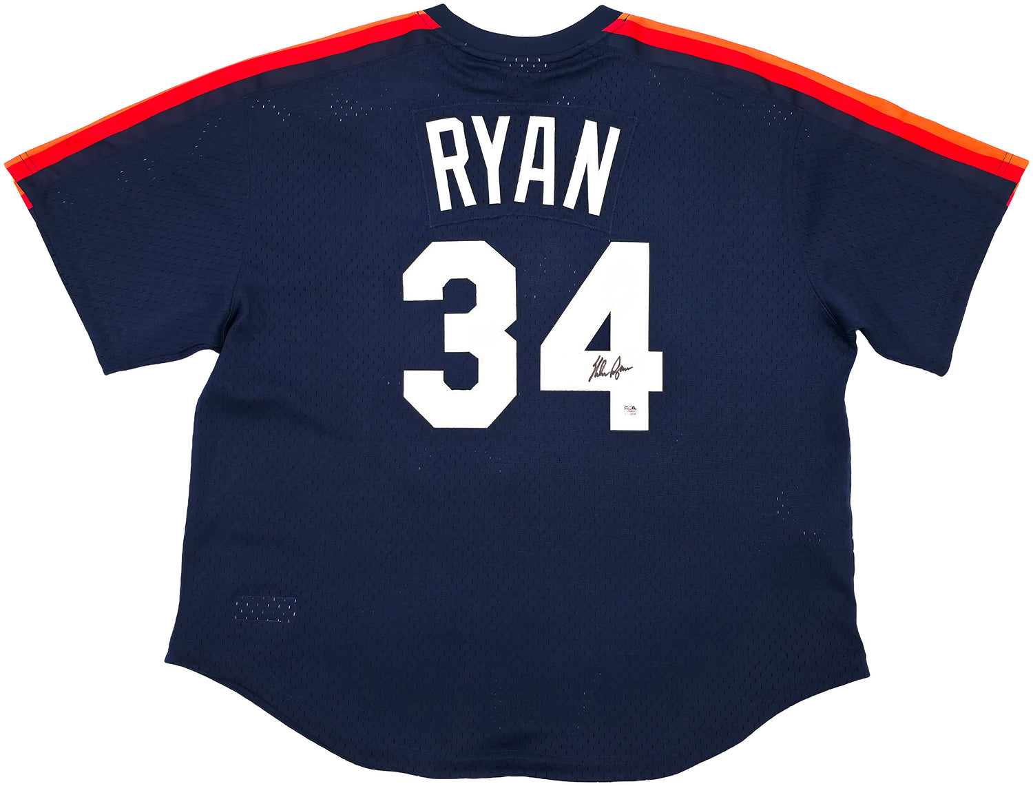 Celebrate the legacy of one of Major League Baseball’s all-time greats with this Blue Authentic Mitchell & Ness Houston Astros Cooperstown Collection Jersey, hand-signed by Hall of Fame pitcher Nolan Ryan. Known for his unmatched fastball and legendary career spanning over two decades, Nolan Ryan made an unforgettable mark with the Houston Astros, where he pitched his record-breaking 5th no-hitter and added to his all-time strikeout record. This premium jersey is perfect for any serious fan or collector looking to own a piece of baseball history.