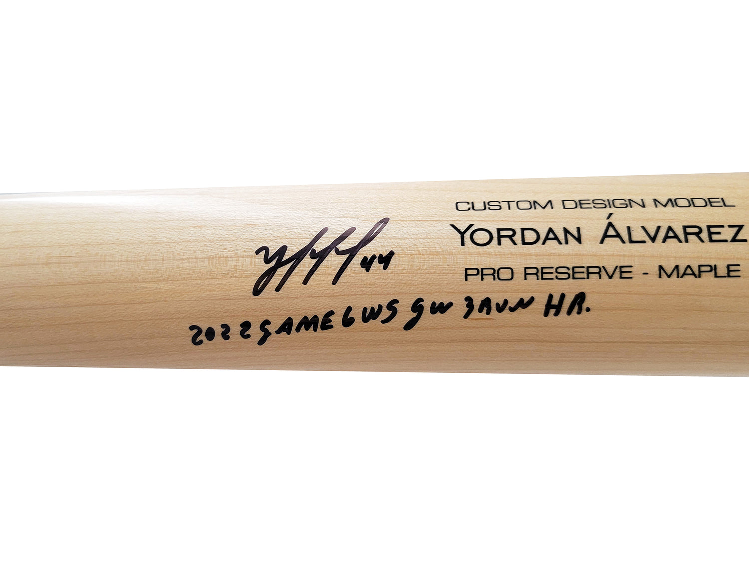 Yordan Alvarez Autographed Blonde Victus Player Model Bat Houston Astros "2022 Game 6 WS GW 3 Run HR" Beckett BAS Witness Stock #210082