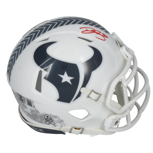 Celebrate a powerful moment in football history with this Houston Texans 2024 Salute to Service mini Riddell Speed helmet, personally hand-signed by star tight end Dalton Schultz. Honoring the bravery of U.S. military service members, the 2024 Salute to Service collection carries deep cultural significance for both avid fans and collectors alike. Whether you're a Houston Texans supporter or a memorabilia enthusiast, this one-of-a-kind autographed mini helmet is a must-have from the 2024 NFL season. This collectible comes authenticated by Beckett Authentication Services and includes a unique, tamper-evident hologram that can be verified online—bringing confidence and proven authenticity to your collection.