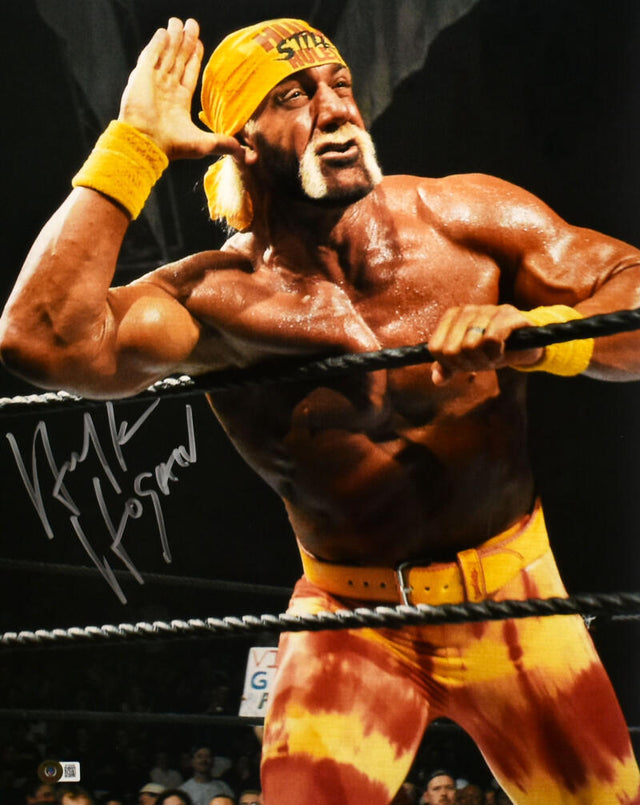 Own a piece of wrestling history with this hand-signed 16x20 photo of WWE icon Hulk Hogan. A true legend in professional wrestling, Hulk Hogan defined an era with his charisma and dominance in the ring. This autographed photo is a must-have for collectors and fans alike, celebrating the legacy of one of the most recognized figures in sports entertainment.