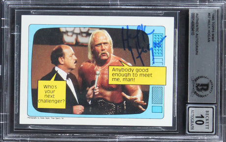 Very low stock (1 unit)$509Unit price /UnavailableHulk Hogan Authentic Signed 1985 Topps WWF #57 Rookie Card Auto 10! BAS Slabbed