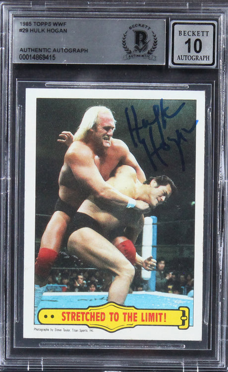 Very low stock (1 unit)$1,279Unit price /UnavailableHulk Hogan Authentic Signed 1985 Topps WWF #29 Rookie Card Auto 10! BAS Slabbed