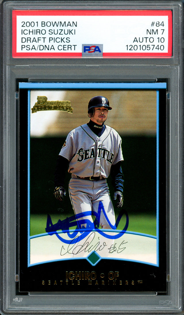 Ichiro Suzuki Autographed 2001 Bowman Draft Picks Rookie Card #84 Seattle Mariners PSA 7 Auto Grade Gem Mint 10 PSA/DNA #120105740