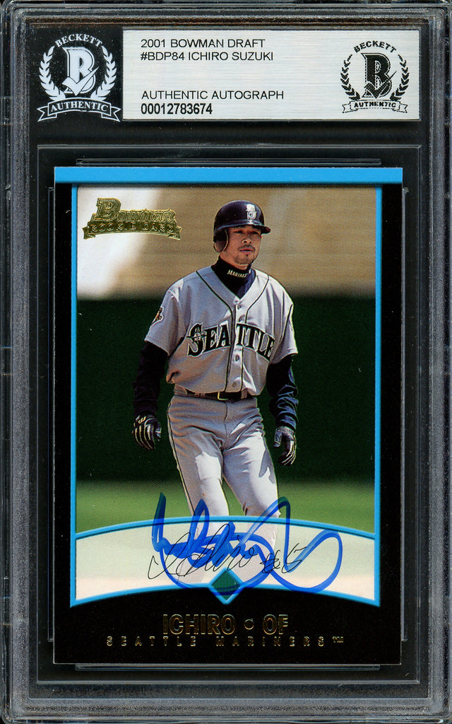 Ichiro Suzuki Autographed 2001 Bowman Draft Picks Rookie Card #BDP84 Seattle Mariners Beckett BAS #12783674