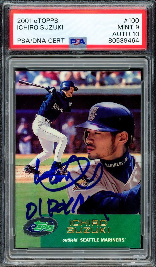 Ichiro Suzuki Autographed 2001 eTopps Rookie Card #100 Seattle Mariners PSA 9 Auto Grade Gem Mint 10 "01 ROY/MVP" PSA/DNA #80539464