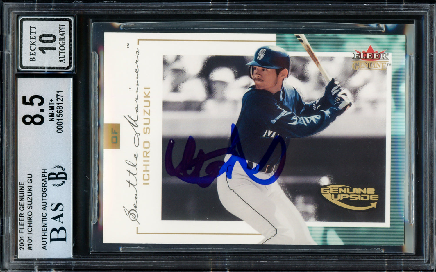Ichiro Suzuki Autographed 2001 Fleer Genuine Rookie Card #101 Seattle Mariners BGS 8.5 Auto Grade Gem Mint 10 #219/1500 Beckett BAS #15681271