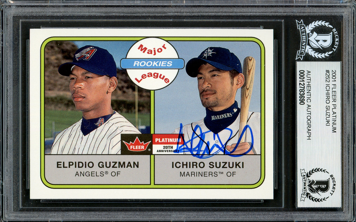 Ichiro Suzuki Autographed 2001 Fleer Platinum Rookie Card #252 Seattle Mariners Beckett BAS #12783690