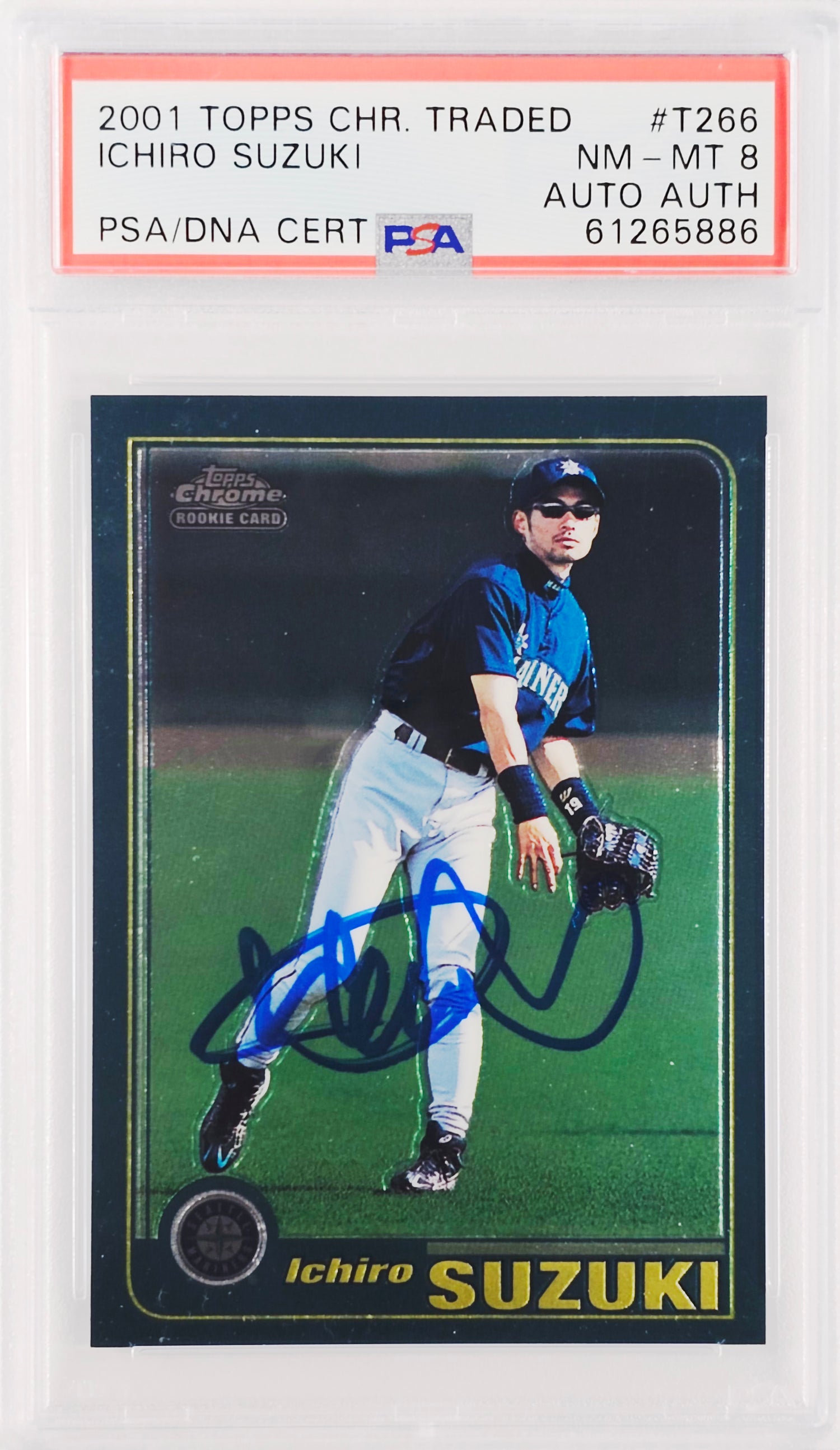 Ichiro Suzuki Autographed 2001 Topps Chrome Traded Rookie Card #T266 Seattle Mariners PSA 8 PSA/DNA #61265886