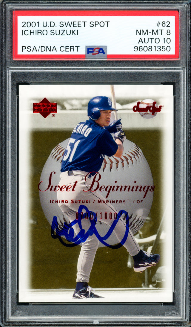 Ichiro Suzuki Autographed 2001 Upper Deck UD Sweet Spot Rookie Card #62 Seattle Mariners PSA 8 Auto Grade Gem Mint 10 #700/1000 PSA/DNA #96091350