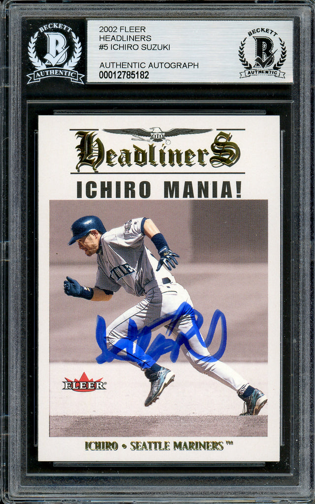 Ichiro Suzuki Autographed 2002 Fleer Headliners Card #5 Seattle Mariners Beckett BAS Stock #194186