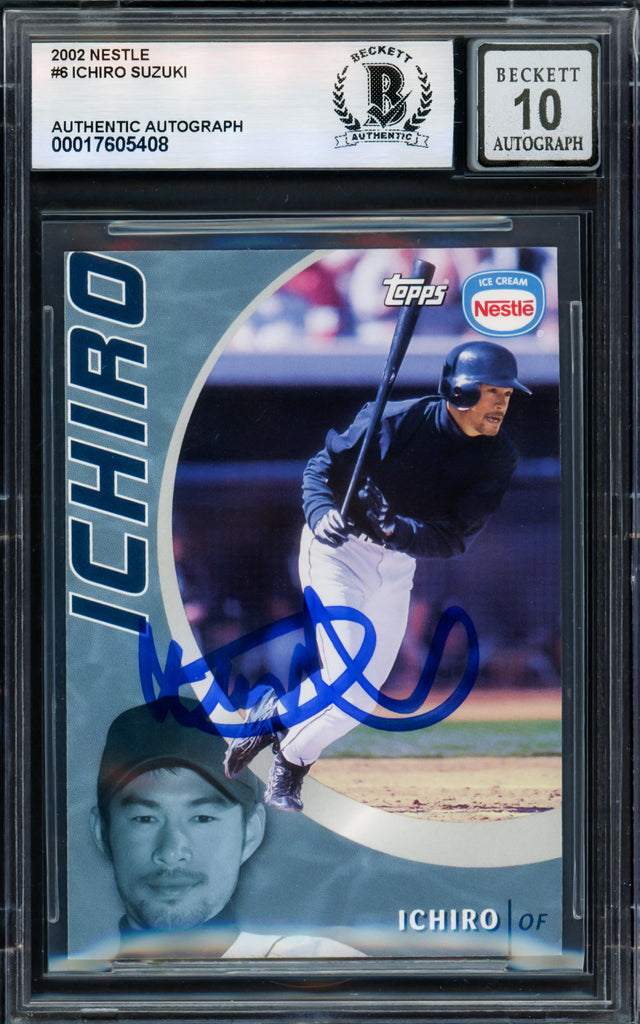 Ichiro Suzuki Autographed 2002 Topps Nestle Card #6 Seattle Mariners Auto Grade Gem Mint 10 Beckett BAS #17605408