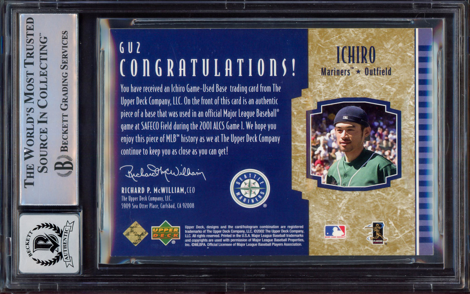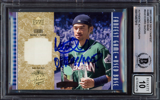 Ichiro Suzuki Autographed 2002 Upper Deck All Star Game Used Base Card #GU2 Seattle Mariners Auto Grade Gem Mint 10 "01 ROY/MVP" 2001 ALCS Game 1 Beckett BAS #15497815