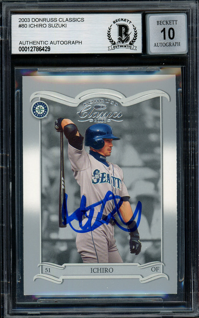 Ichiro Suzuki Autographed 2003 Donruss Classics Card #80 Seattle Mariners Auto Grade Gem Mint 10 Beckett BAS Stock #194348