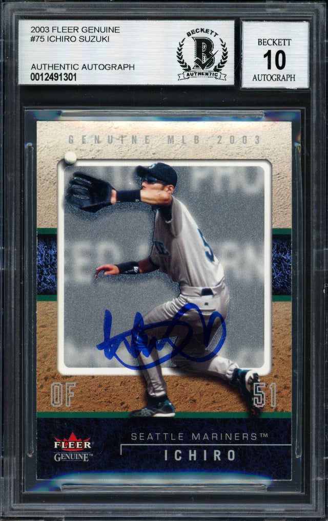 Ichiro Suzuki Autographed 2003 Fleer Genuine Card #75 Seattle Mariners Auto Grade 10 Beckett BAS #12491301