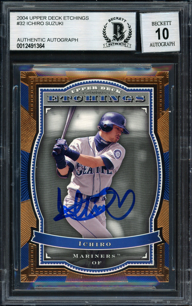 Ichiro Suzuki Autographed 2004 Upper Deck Etchings Card #32 Seattle Mariners Auto Grade 10 Beckett BAS #12491364
