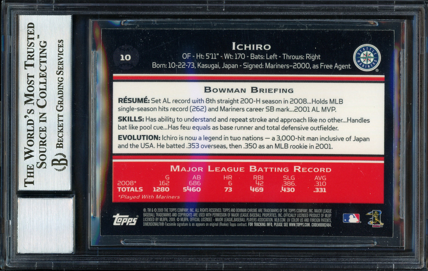 Ichiro Suzuki Autographed 2009 Bowman Chrome Card #10 Seattle Mariners Auto Grade 10 Beckett BAS #12669690