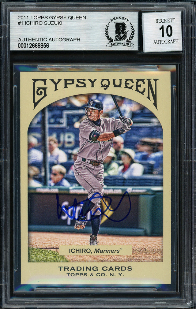 Ichiro Suzuki Autographed 2011 Topps Gypsy Queen Card #1 Seattle Mariners Auto Grade 10 Beckett BAS #12669856