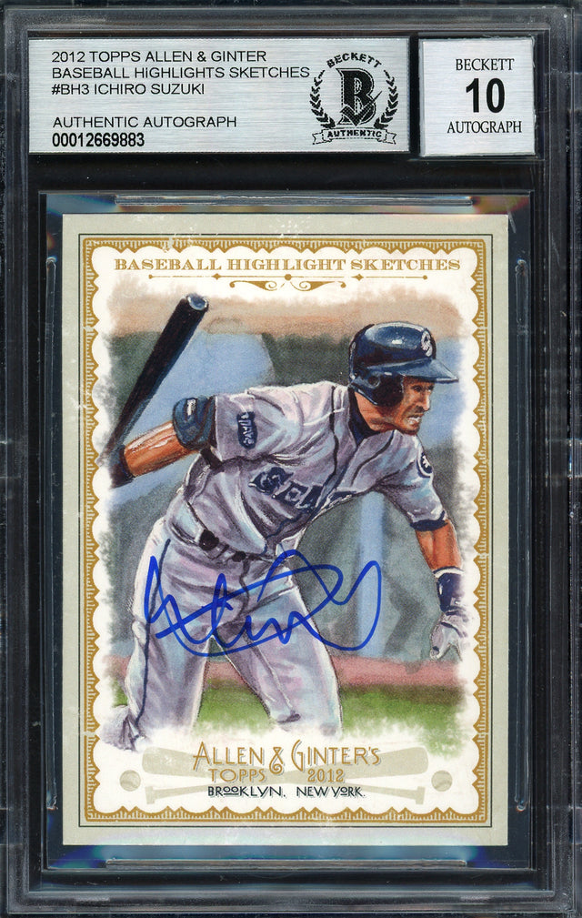 Ichiro Suzuki Autographed 2012 Topps Allen & Ginter Highlight Sketches Card #BH-3 Seattle Mariners Auto Grade 10 Beckett BAS #12669883
