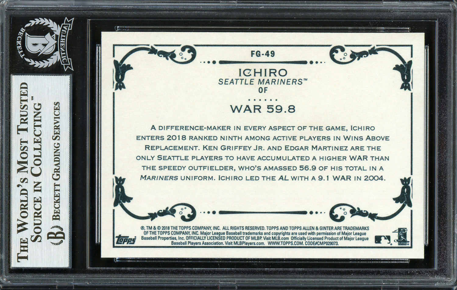 - 2018 Topps Allen & Ginter Fantasy Goldmine Card #FG-49 – A unique tribute to Ichiro's impact on the game.