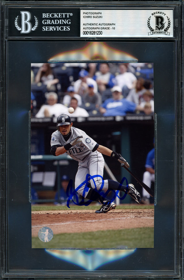 Ichiro Suzuki Autographed 4x6 Photo Seattle Mariners Auto Grade Gem Mint 10 Beckett BAS #18281230