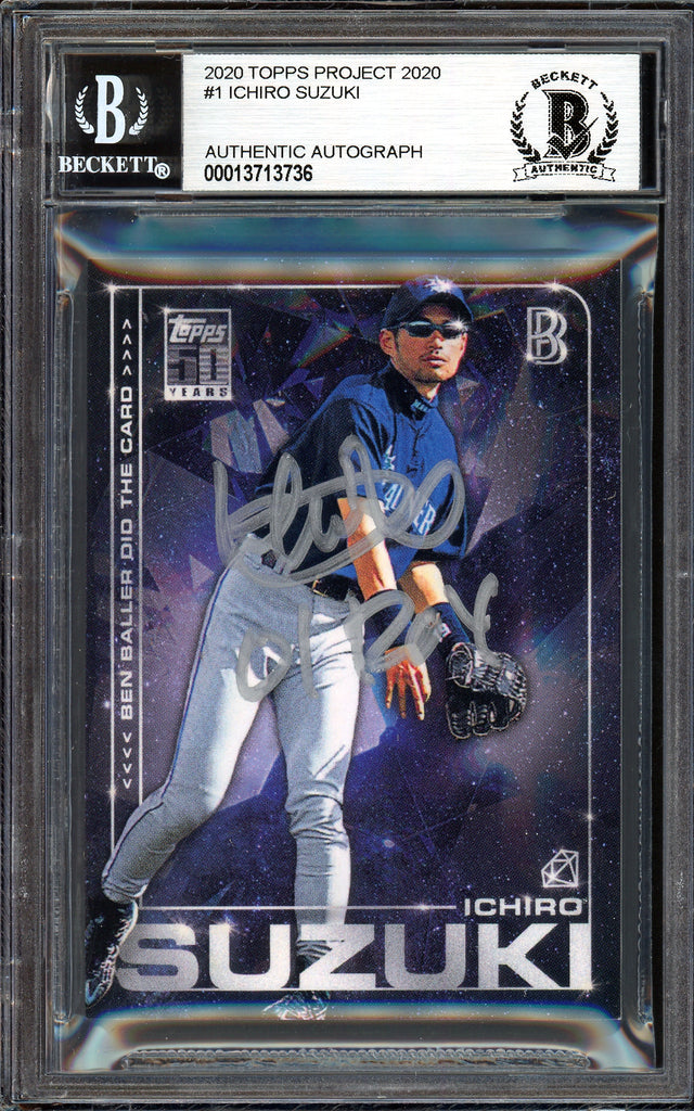 Ichiro Suzuki Autographed Topps Project 2020 Ben Baller Card #1 Seattle Mariners "01 ROY" Silver #1/1 Beckett BAS #13713736