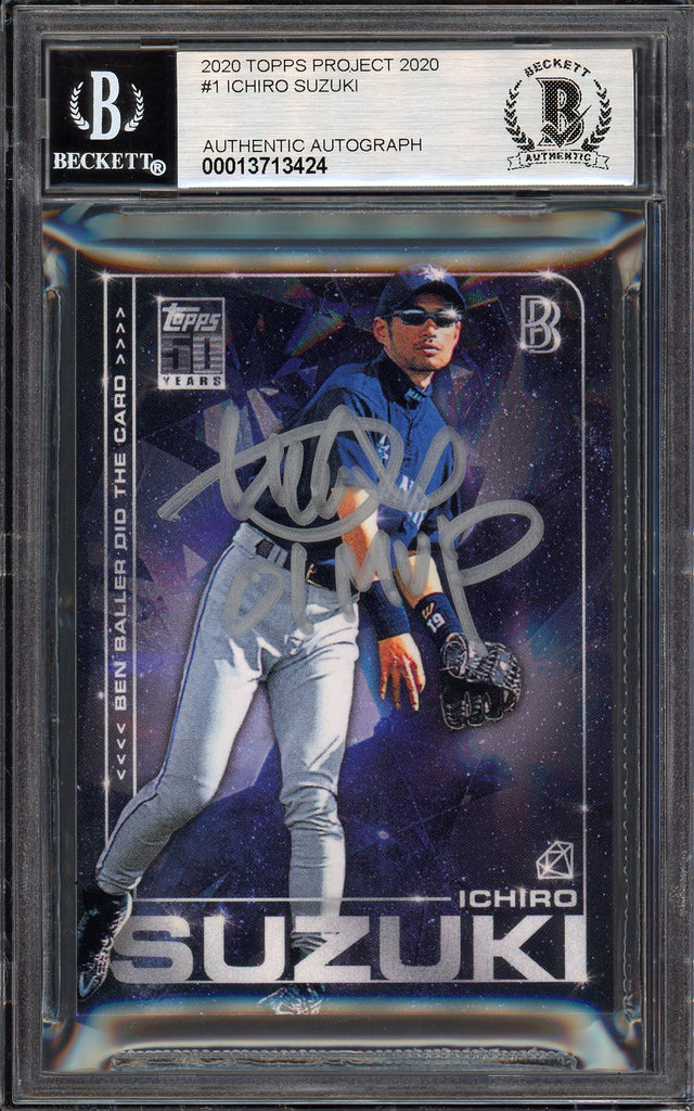 Ichiro Suzuki Autographed Topps Project 2020 Ben Baller Card #1 Seattle Mariners Auto Grade Gem Mint 10 "01 MVP" Silver #1/1 Beckett BAS #13713424