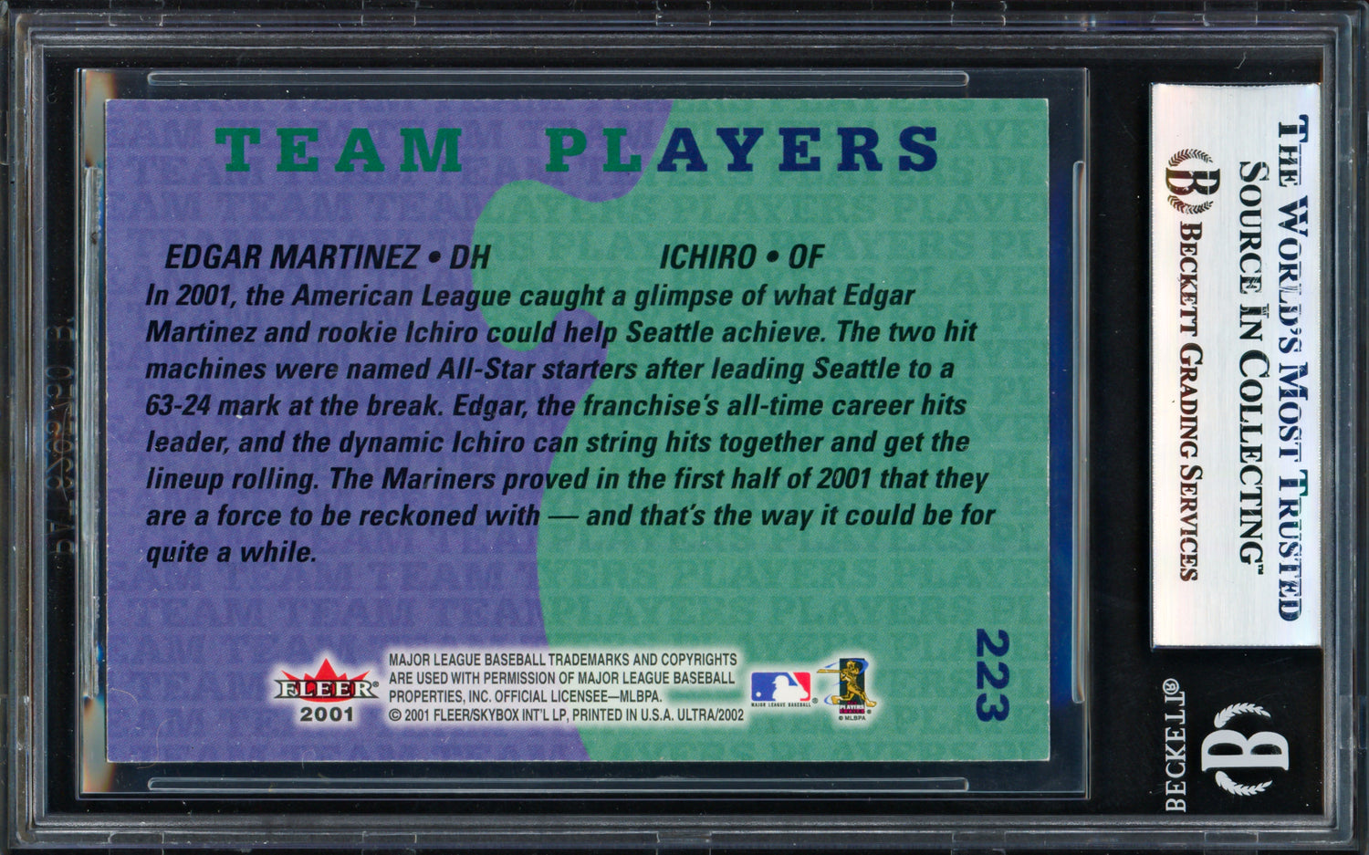 - Authentic 2001 Fleer Ultra Card #223 featuring Ichiro Suzuki & Edgar Martinez