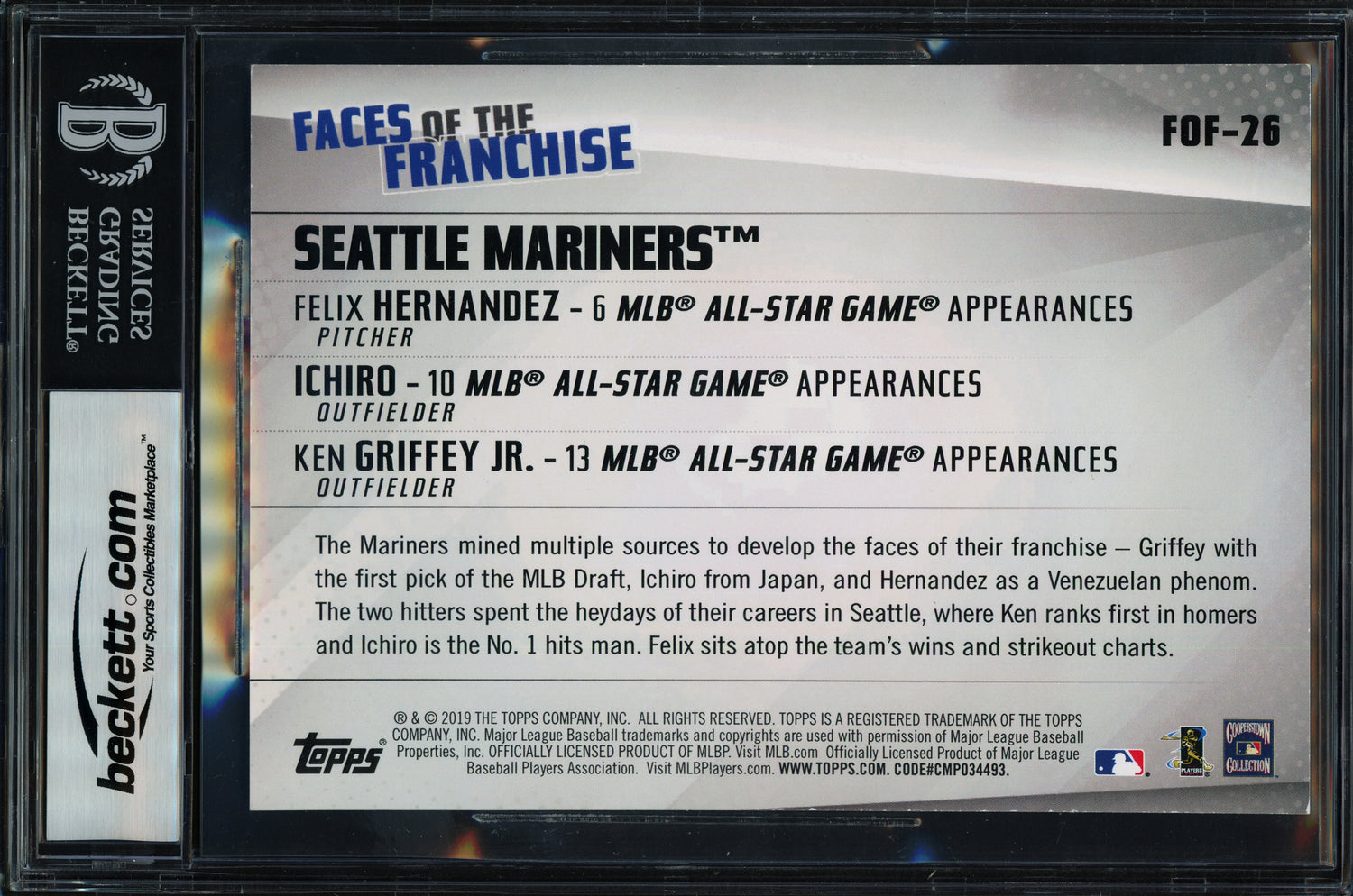 Ken Griffey Jr., Ichiro Suzuki & Felix Hernandez Autographed 2019 Topps Faces of the Franchise 5x7 Card #FOF-26 Seattle Mariners #8/49 Beckett BAS #17401947